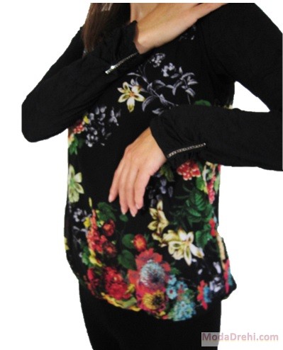 Черни ръкави, флорална ефирна част с мека подплата.